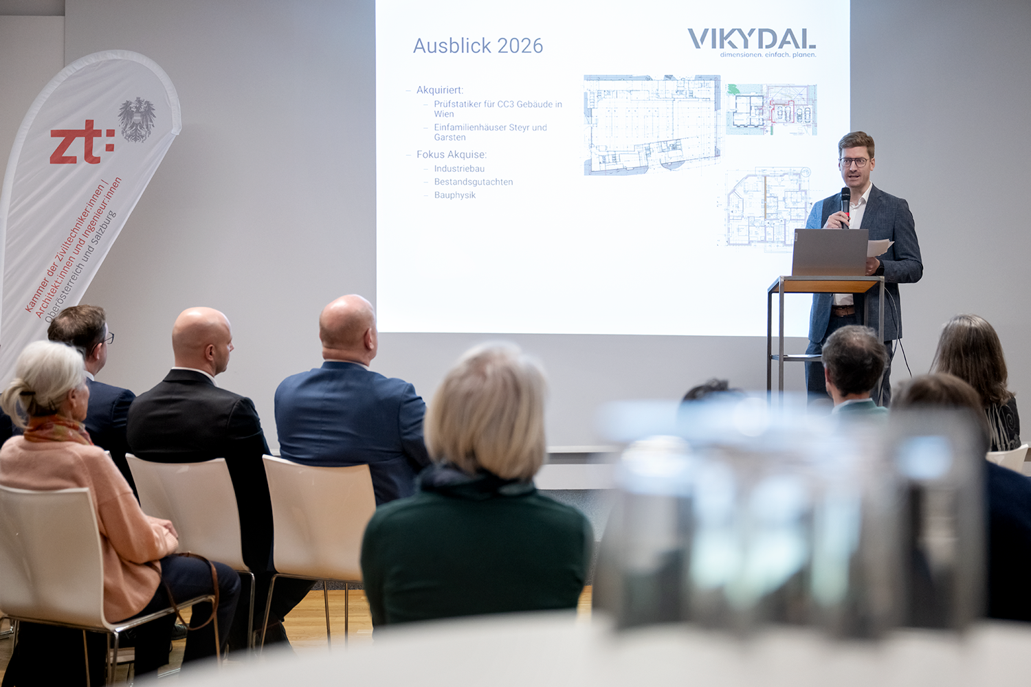 Ein gutes Jahr startet am besten in guter Gesellschaft: Der Jahresauftakt 2026 gemeinsam mit der Kammer der Ziviltechniker*innen für OÖ & Salzburg, der Zentralvereinigung der Architekt*innen OÖ und der Kunstuniversität Linz | die architektur war gut besucht.