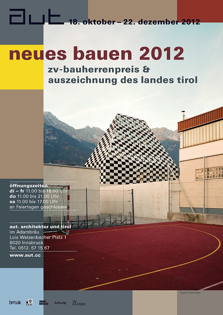 Ab dem Abend der Preisverleihung, 20.00 Uhr, sind sämtliche zur „Auszeichnung des Landes Tirol für Neues Bauen 2012“ eingereichten Projekte im aut zu sehen. Zusammen mit der parallel laufenden Ausstellung aller für den „ZV-Bauherrenpreis 2012“ nominierten Bauwerke bietet sich den BesucherInnen des aut damit die Möglichkeit, sich einen Überblick über das aktuelle Architekturgeschehen sowohl in Tirol als auch in ganz Österreich zu verschaffen.